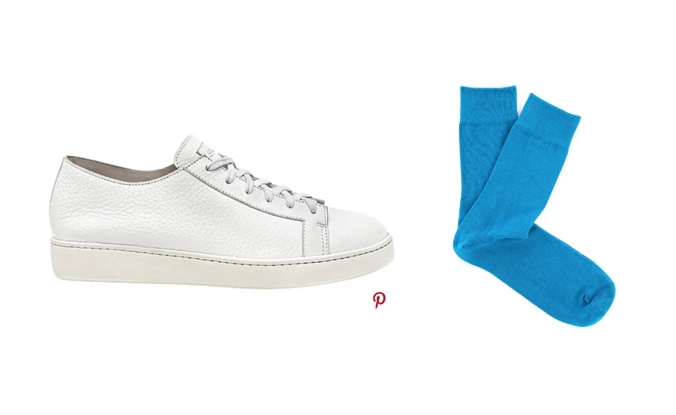 Для этой лаконичной модели подбираем однотонные синие носки Tezido, классические джинсы и белую однотонную футболку. А если вечером станет прохладно, захватите твидовый жакет или легкую куртку такого же цвета.