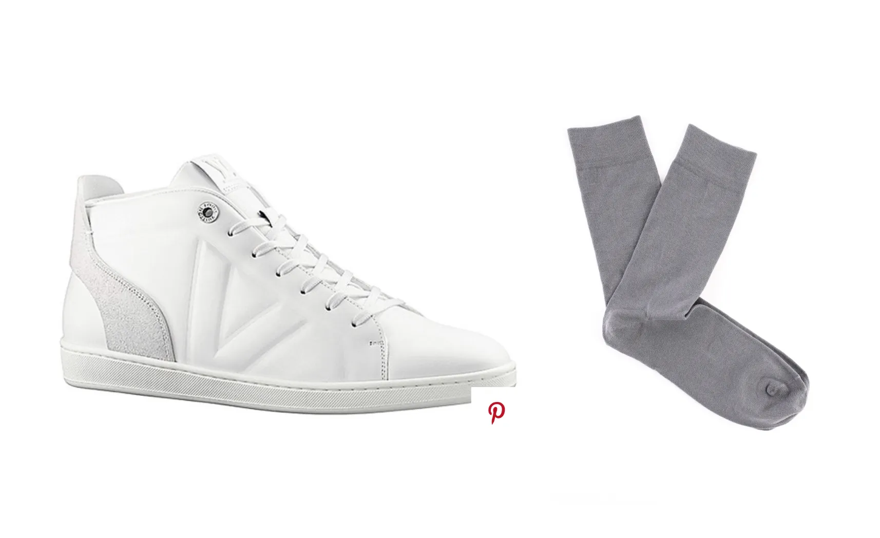 Название бренда обязывает быть более строгим, поэтому давайте остановимся на однотонных серых носках. И это, поверьте нам, идеальное сочетание. Добавим джинсы, футболку и легкий кардиган в тон. В таком образе можно смело отправляться даже на деловые переговоры.