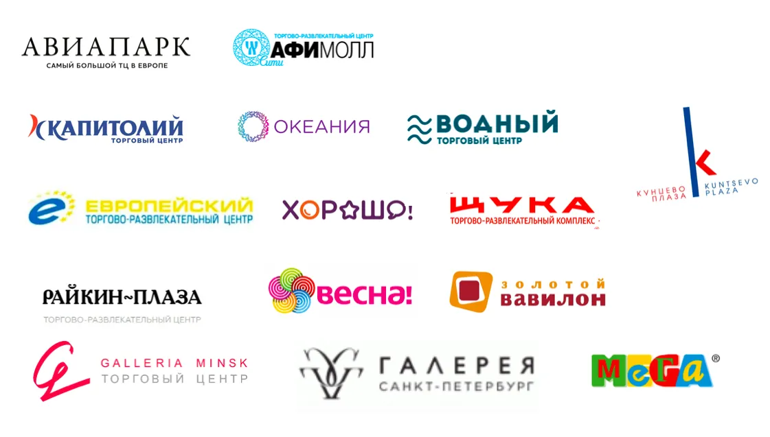 Торговые центры, в которых мы открывали сезонные точки и продолжаем сотрудничество каждый год: